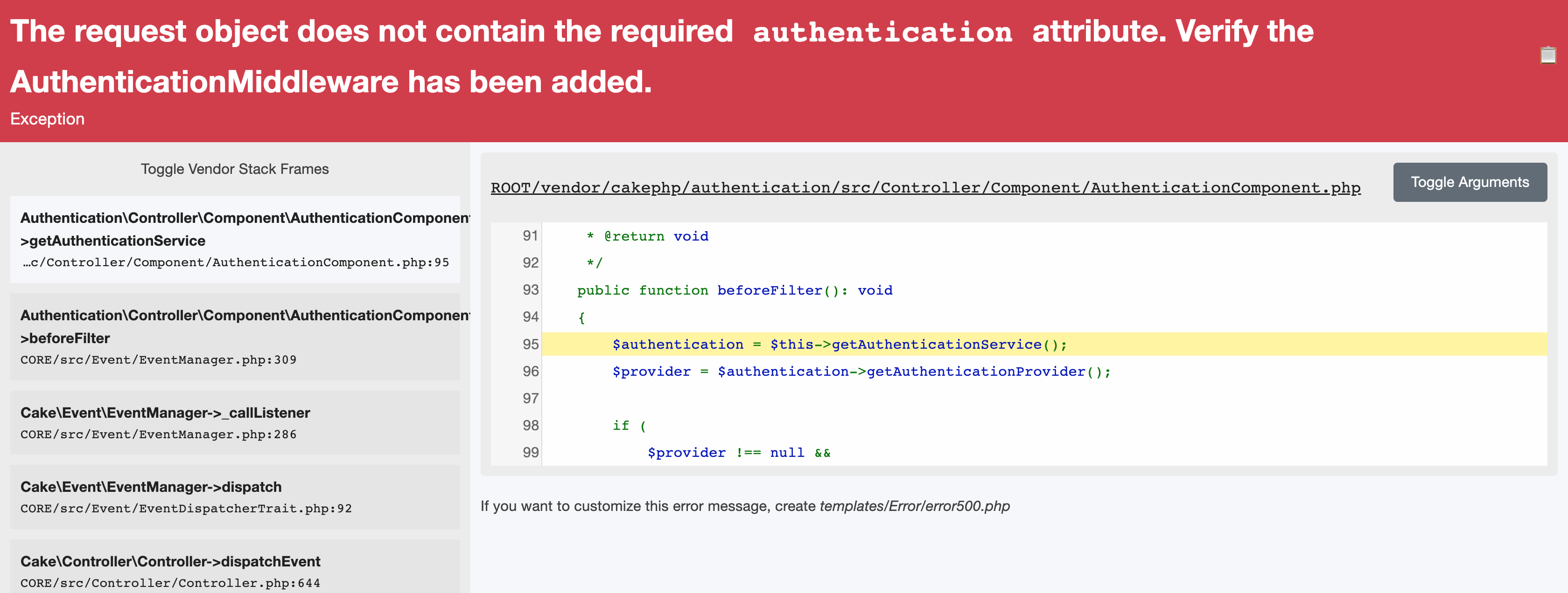 I still learning about CakePHP and first try following the CMS Tutorial, but when I try to make a login page using Authentication 2.4 on this page CMS Tutorial - Authentication - 4.x I have an error like this